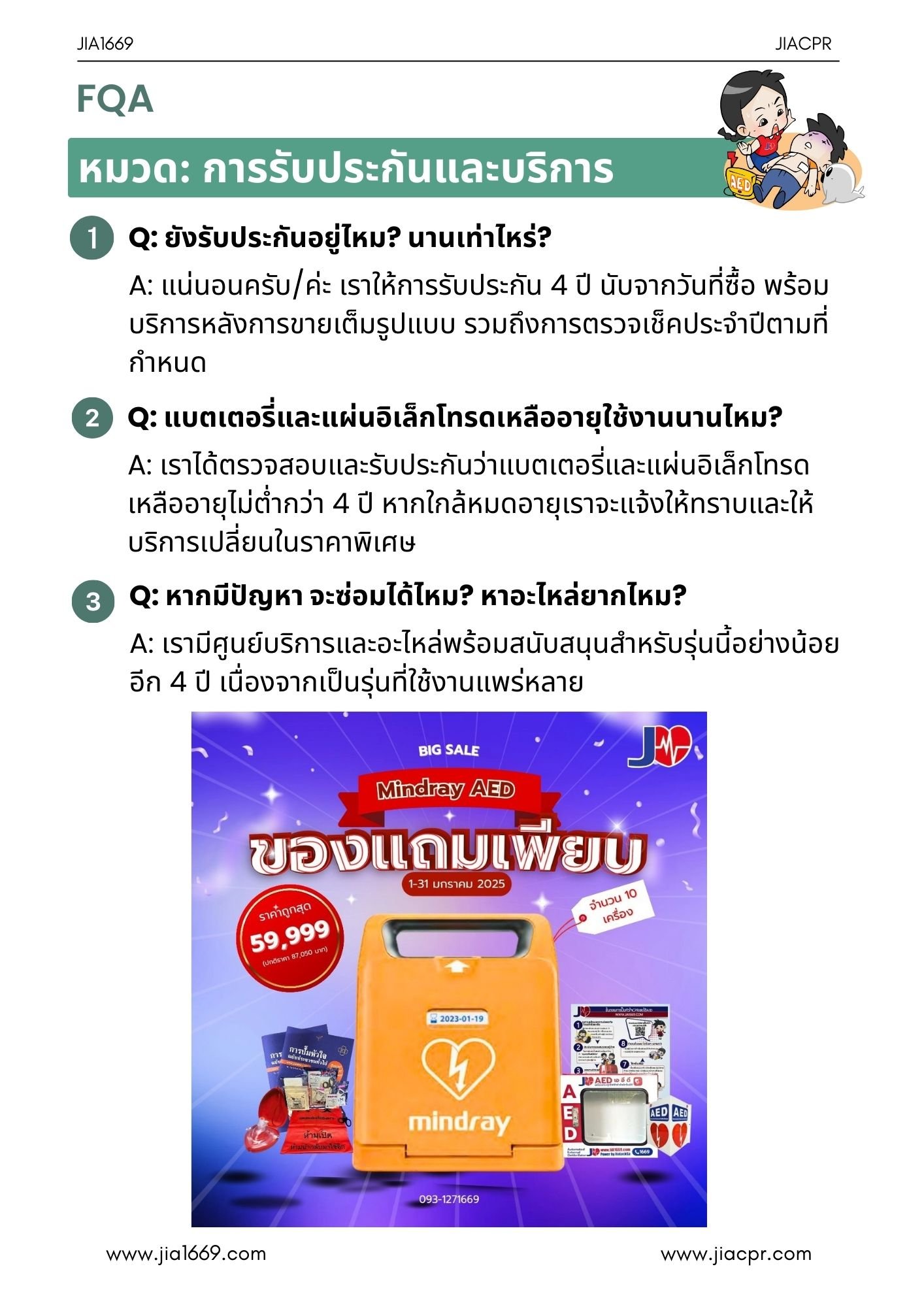 เว็บไซต์: www.jia1669.com | www.jiacpr.com