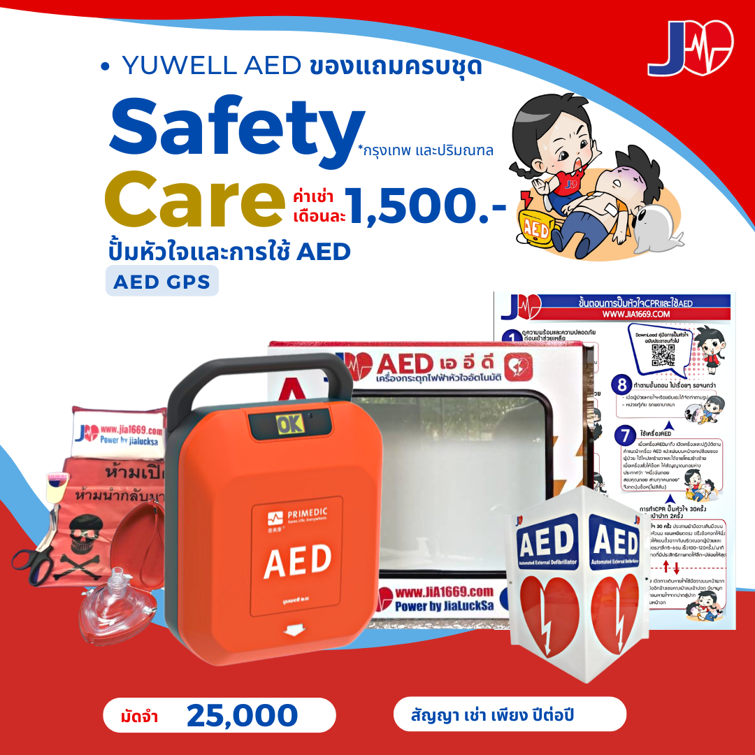 ✅ อุปกรณ์มาตรฐานพร้อมใช้: เครื่อง AED + ระบบติดตาม GPS + ตู้เก็บอุปกรณ์
